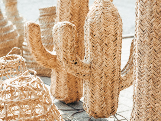 Handgeflochtener Kaktus aus Halfagras mit Fuß aus Metall