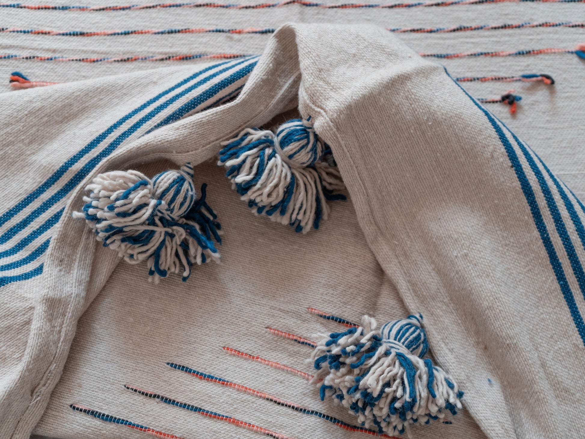 Handgefertigte marokkanische Tagesdecke mit Quasten | 230cm x 180cm