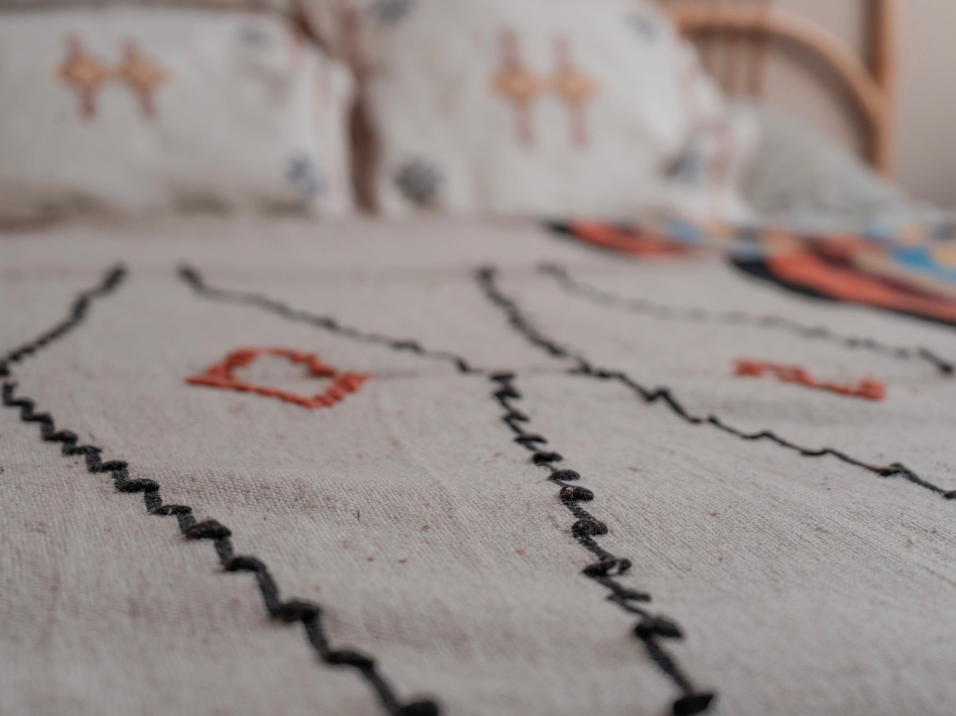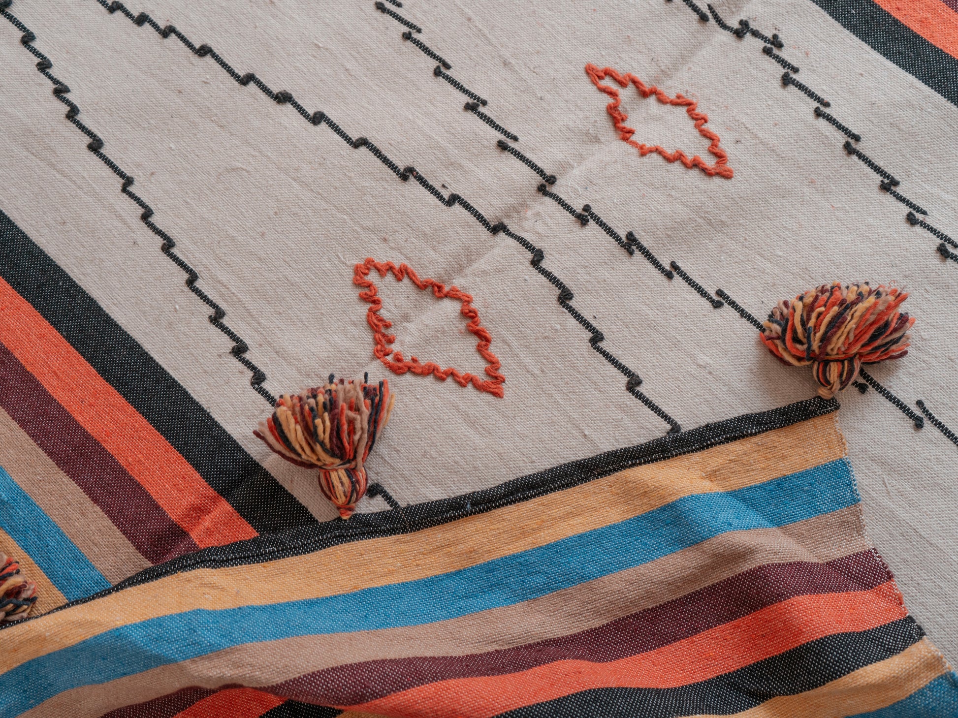Handgefertigte marokkanische Tagesdecke mit Quasten | 215cm x 180cm
