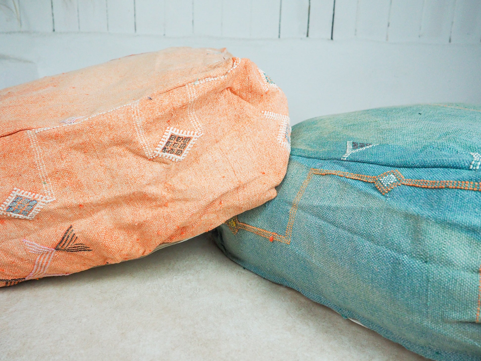 Unsere handgemachten Poufs bestehen aus Sabra Fasern (Kaktusseide)