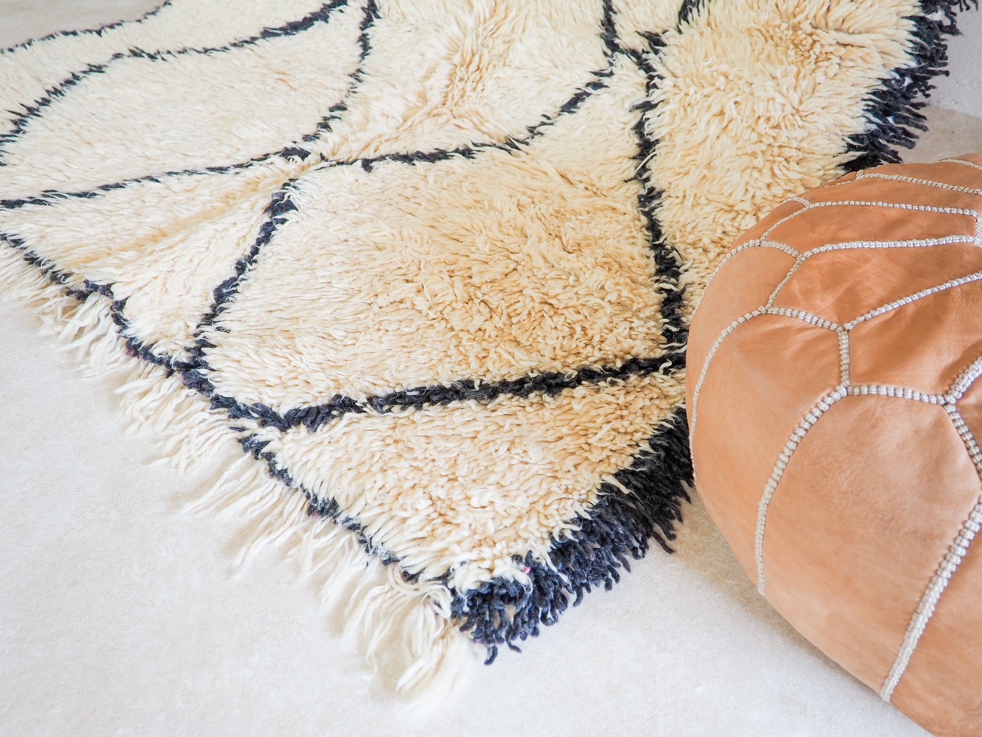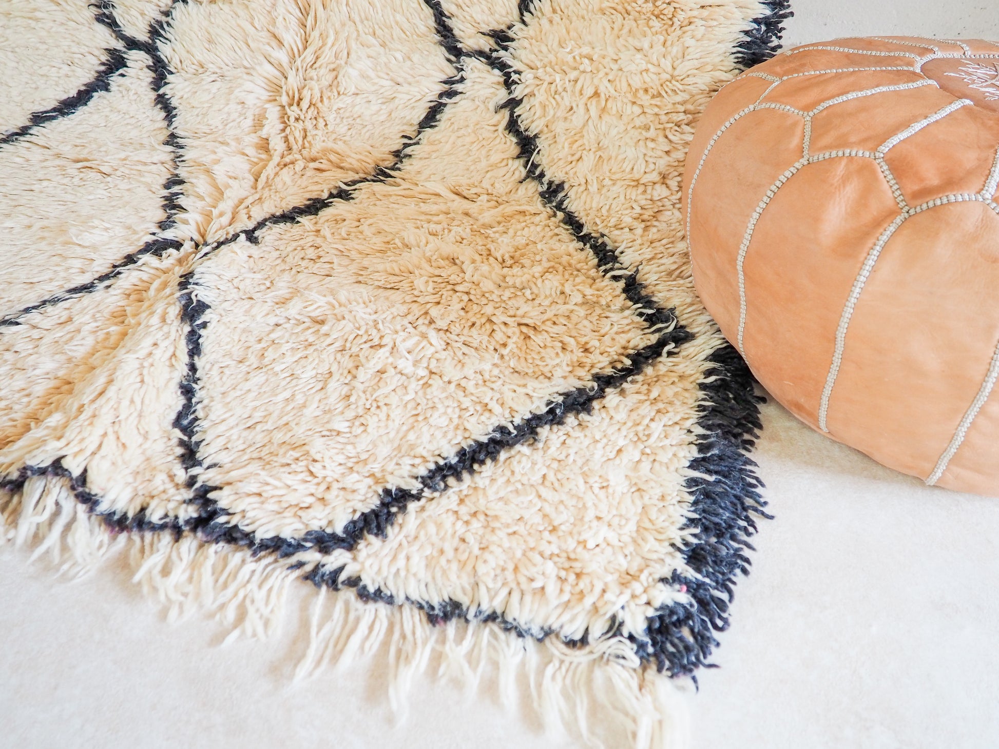 Entdecke die zeitlose Eleganz und das traditionelle Handwerk mit unserem handgefertigten Beni Ouarain Teppich `Faris` aus Marokko.