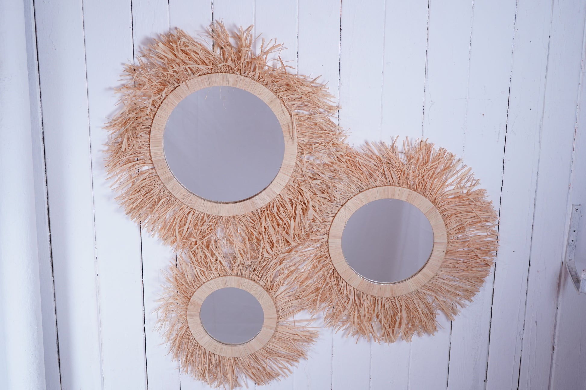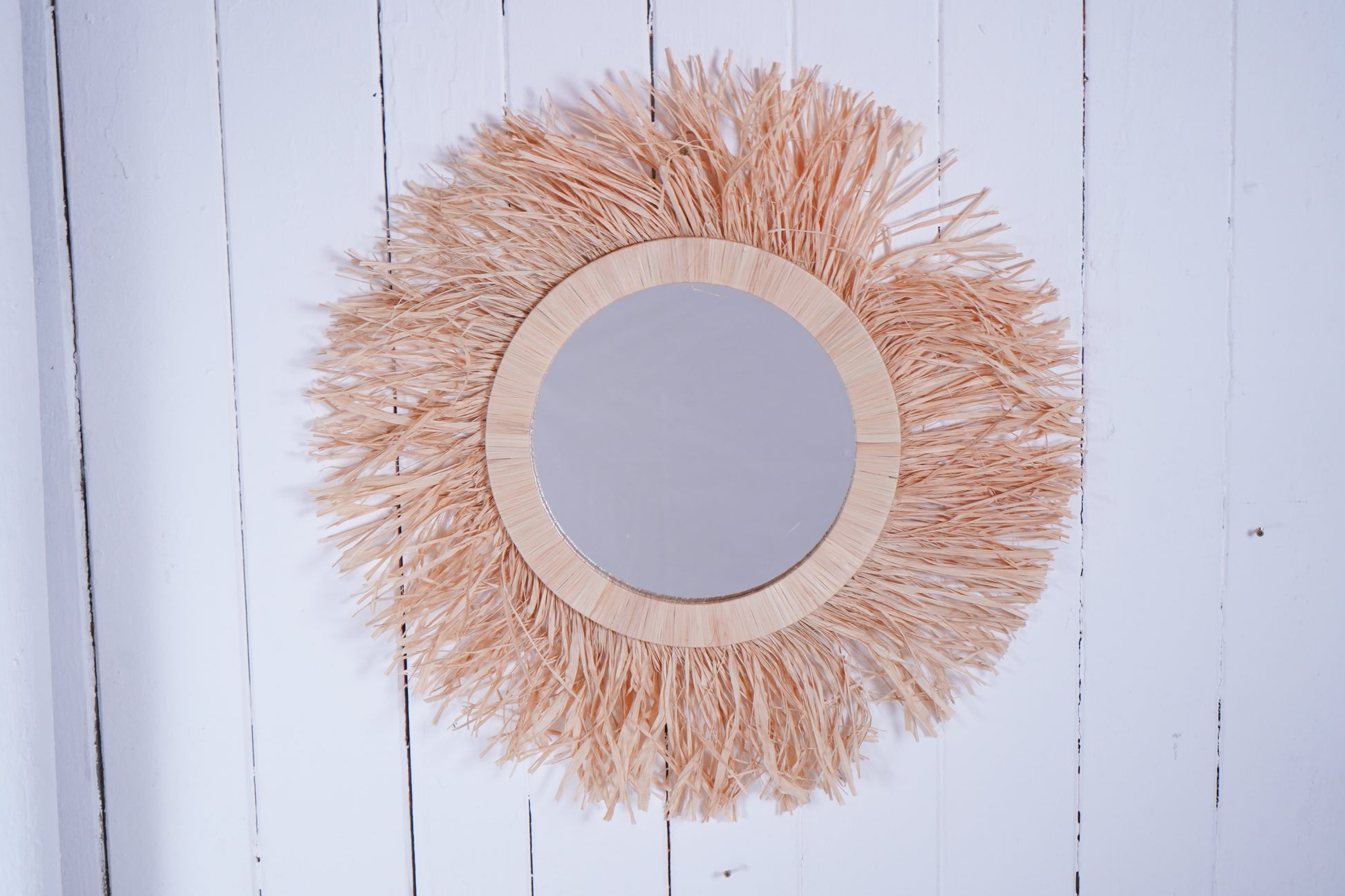 Marokkanischer Boho Wandspiegel handgefertigt aus Raffia