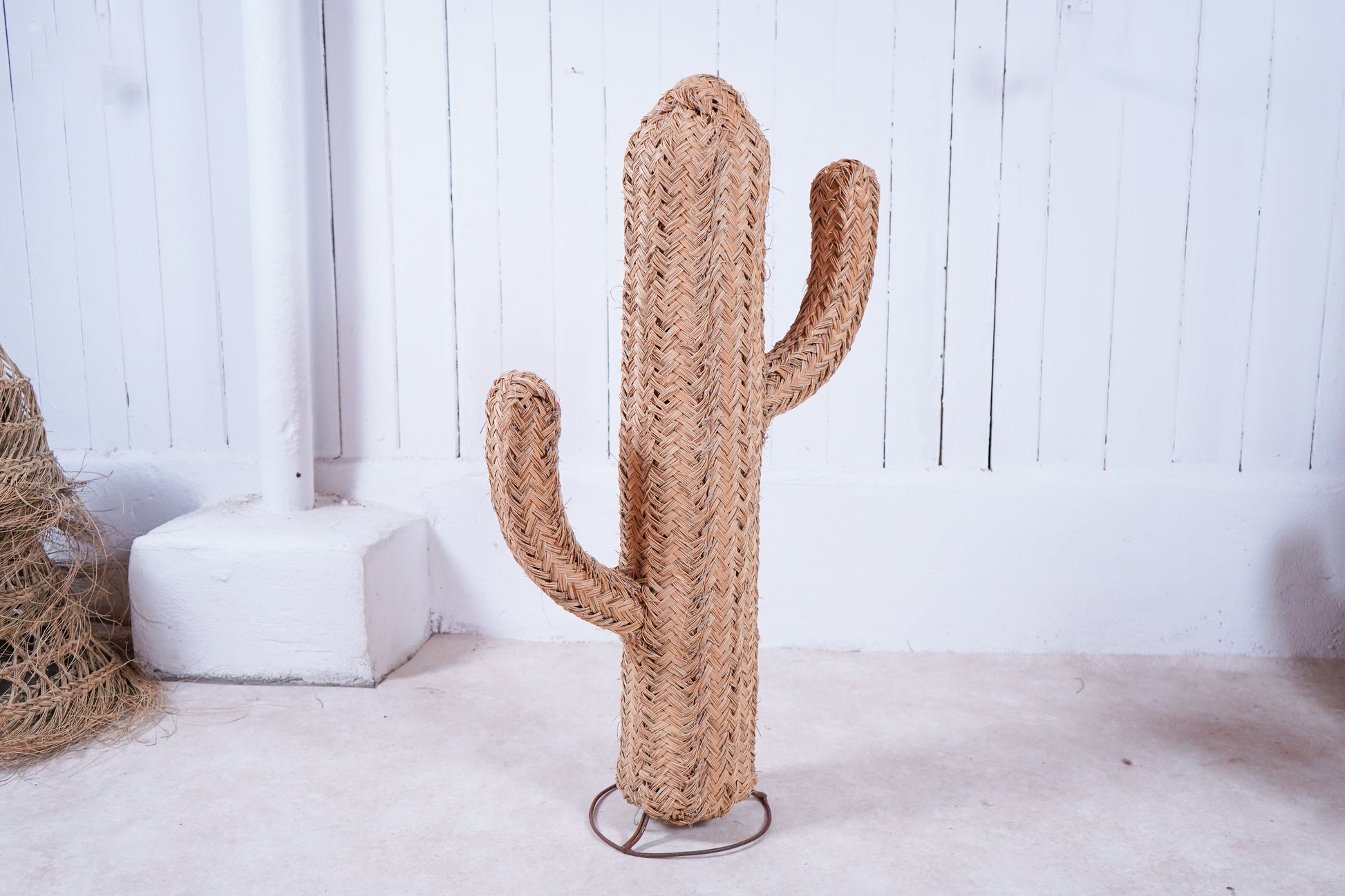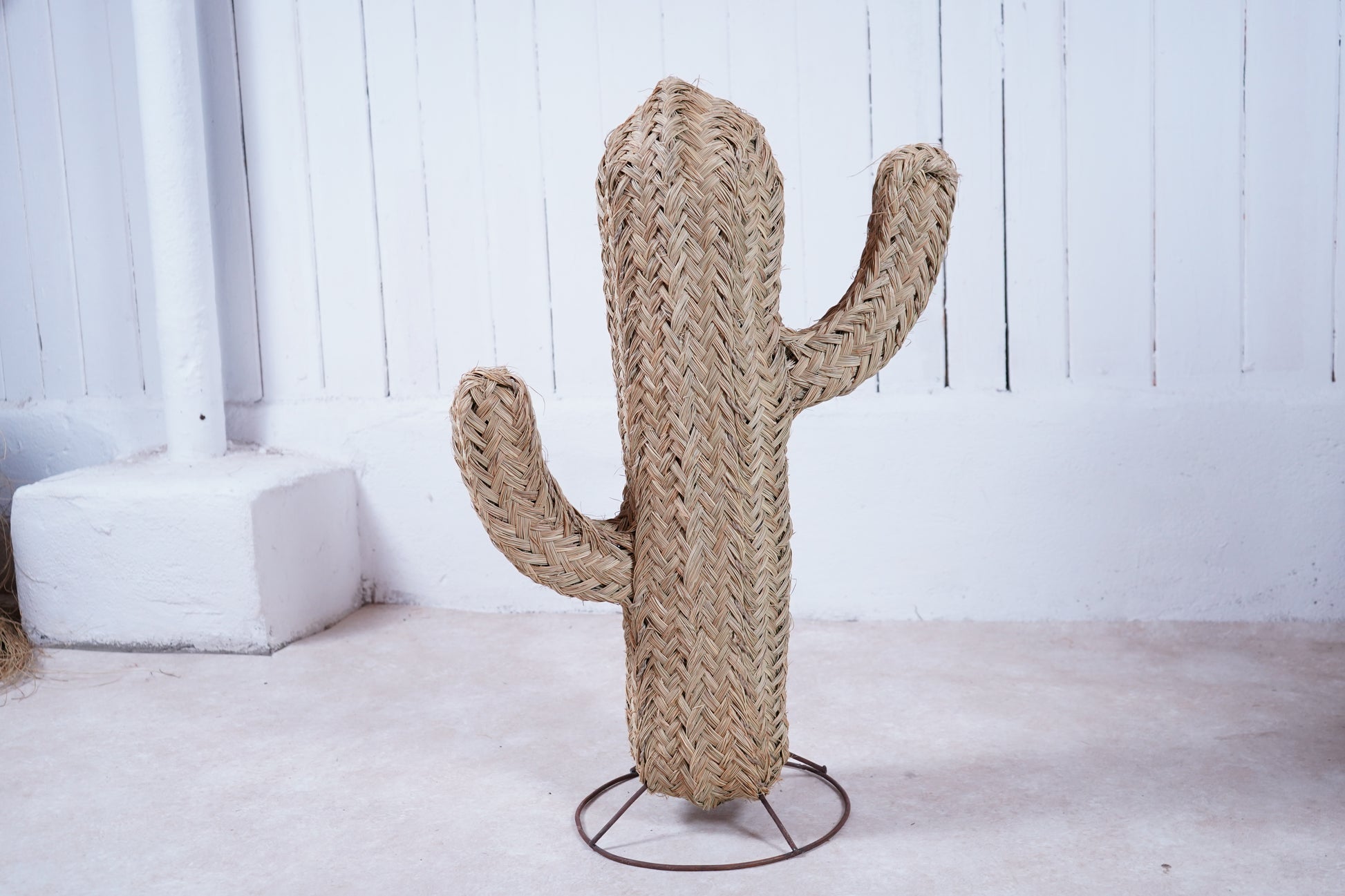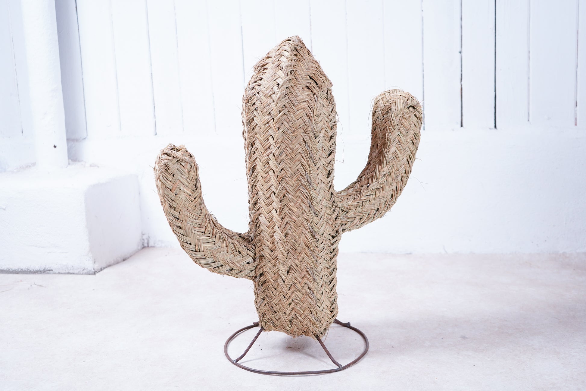 Handgeflochtener Kaktus aus Halfagras mit Fuß aus Metall