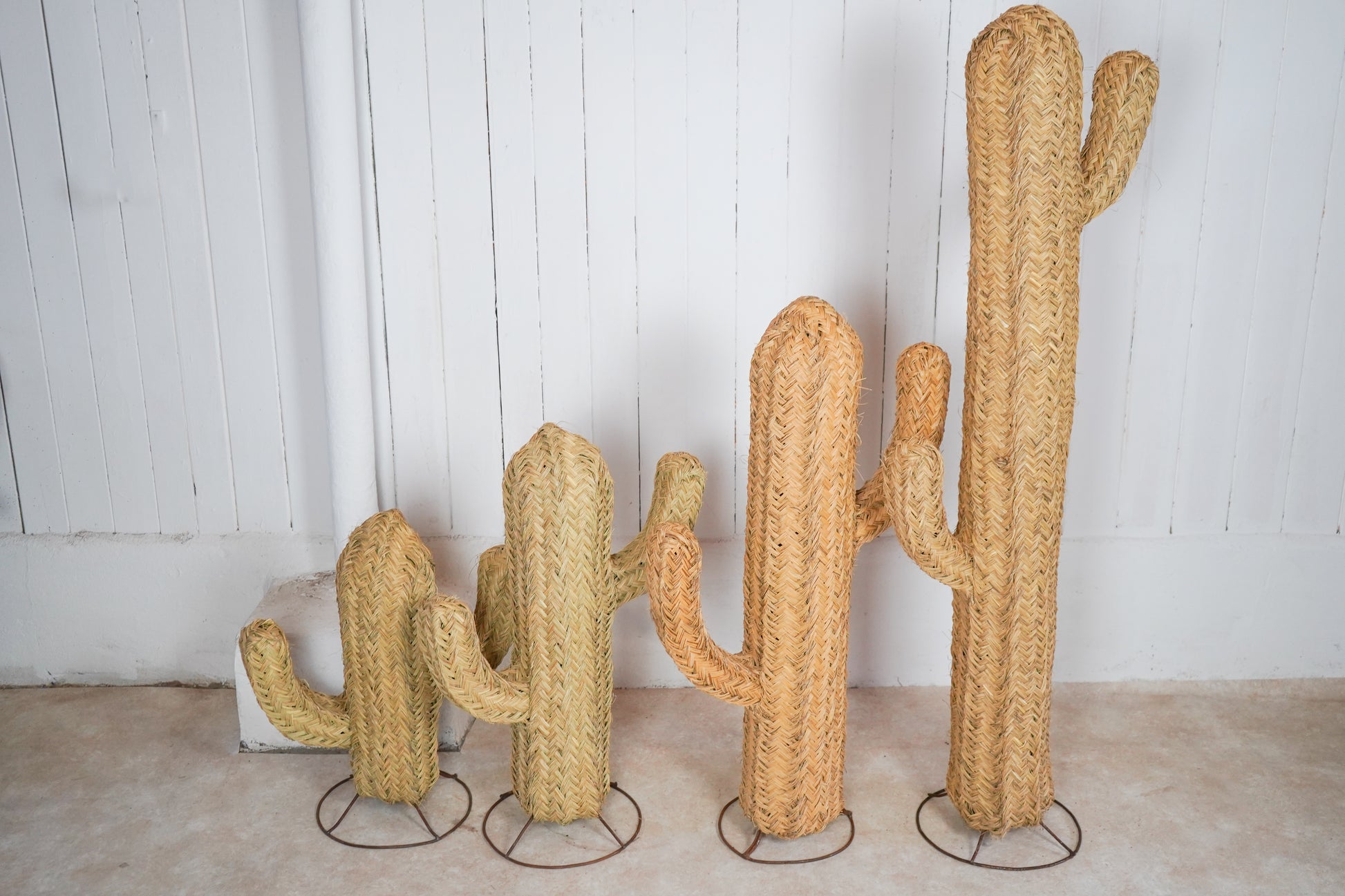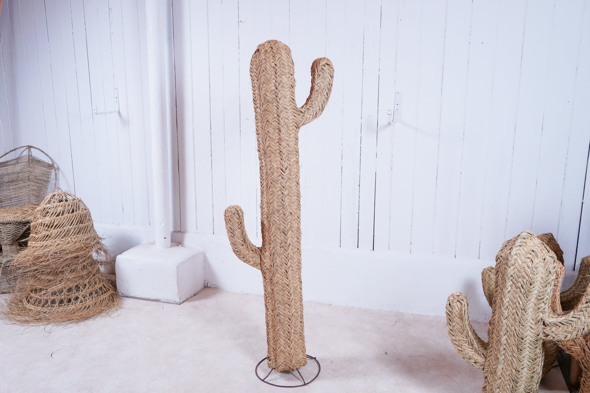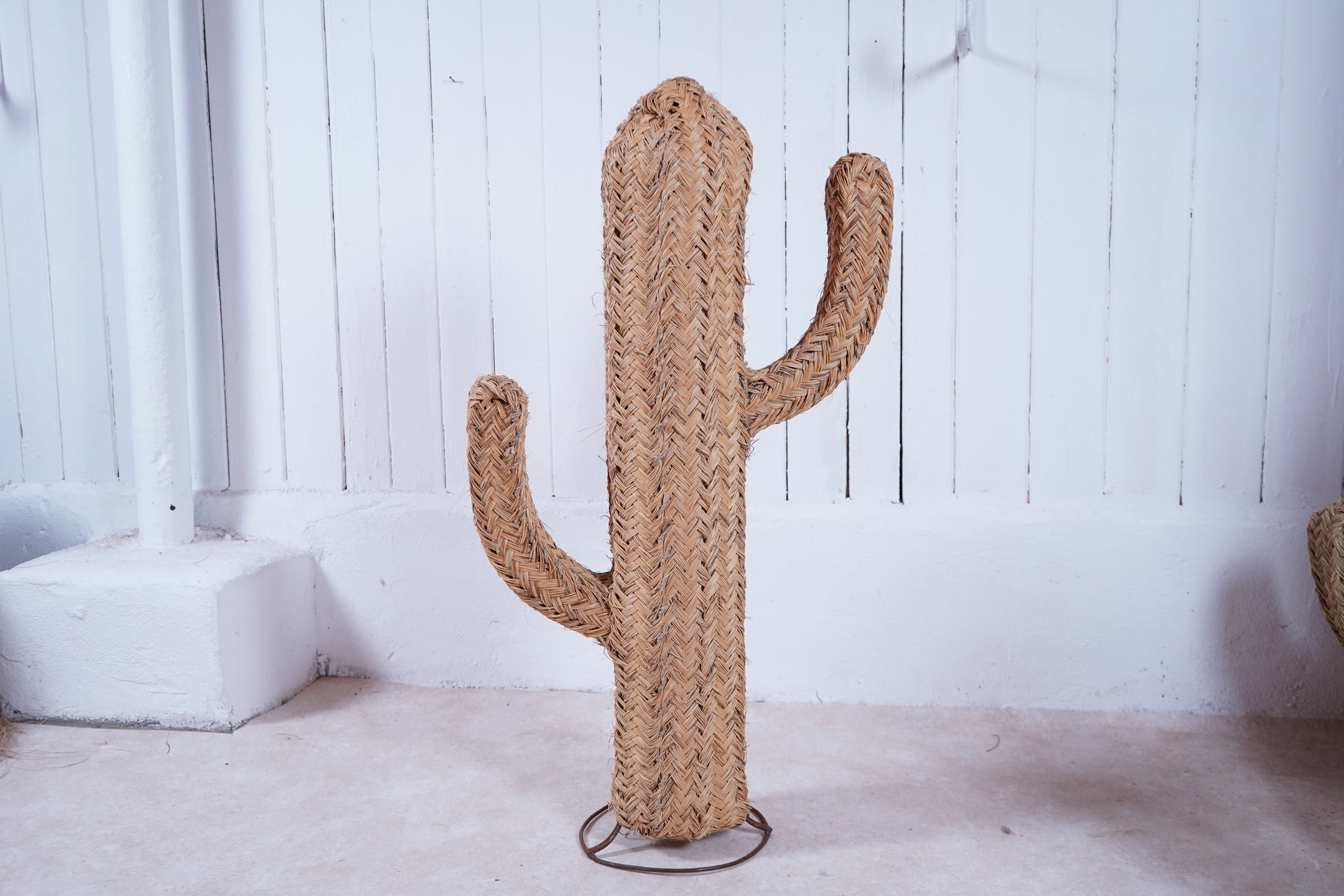 Handgeflochtener Kaktus aus Halfagras mit Fuß aus Metall