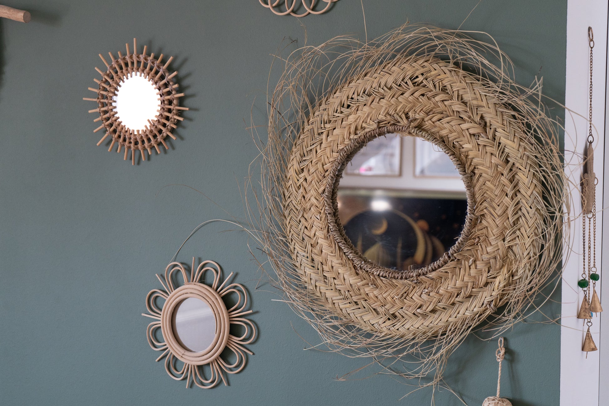 Boho-Chic Stil: Der elegante Boho-Stil dieses Spiegels bringt eine entspannte, kreative Atmosphäre in jeden Raum. Die natürlichen Fasern und das dezente Design passen perfekt zu einer Vielzahl von Einrichtungsstilen.