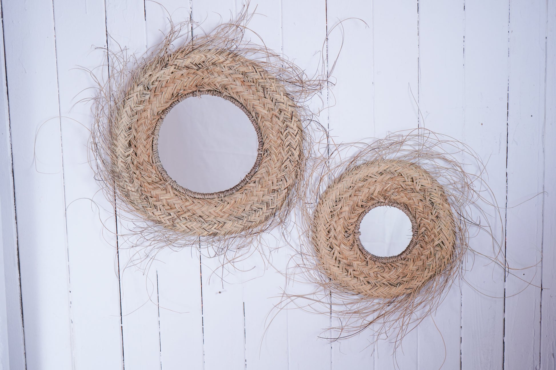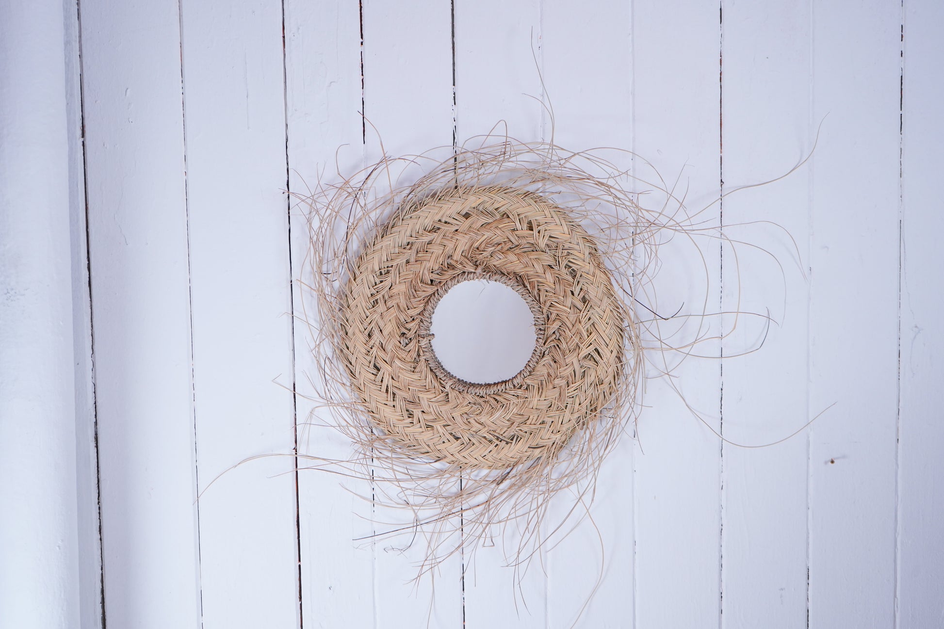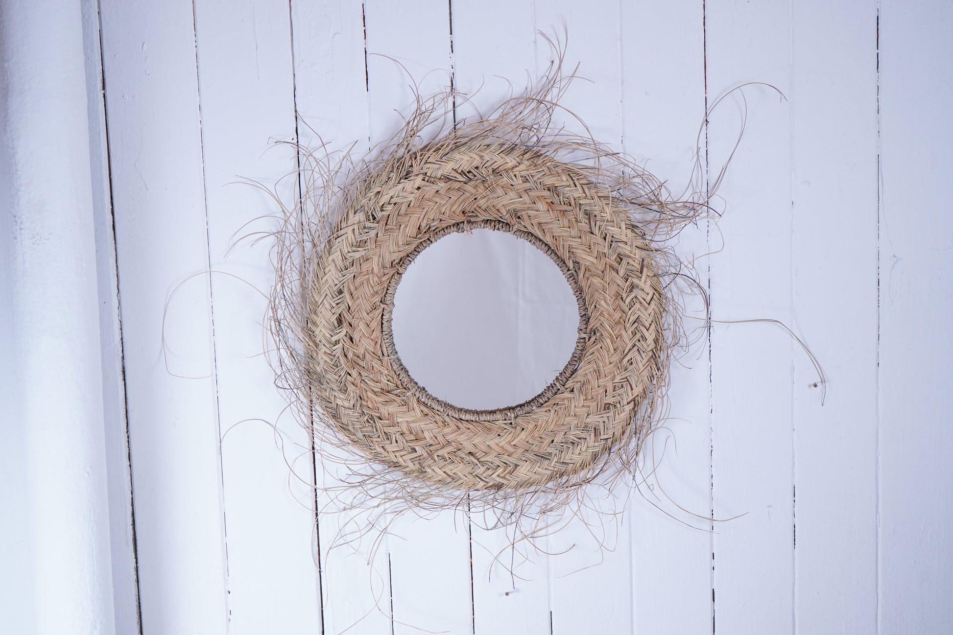 Marokkanischer Boho Wandspiegel handgefertigt aus Halfagras