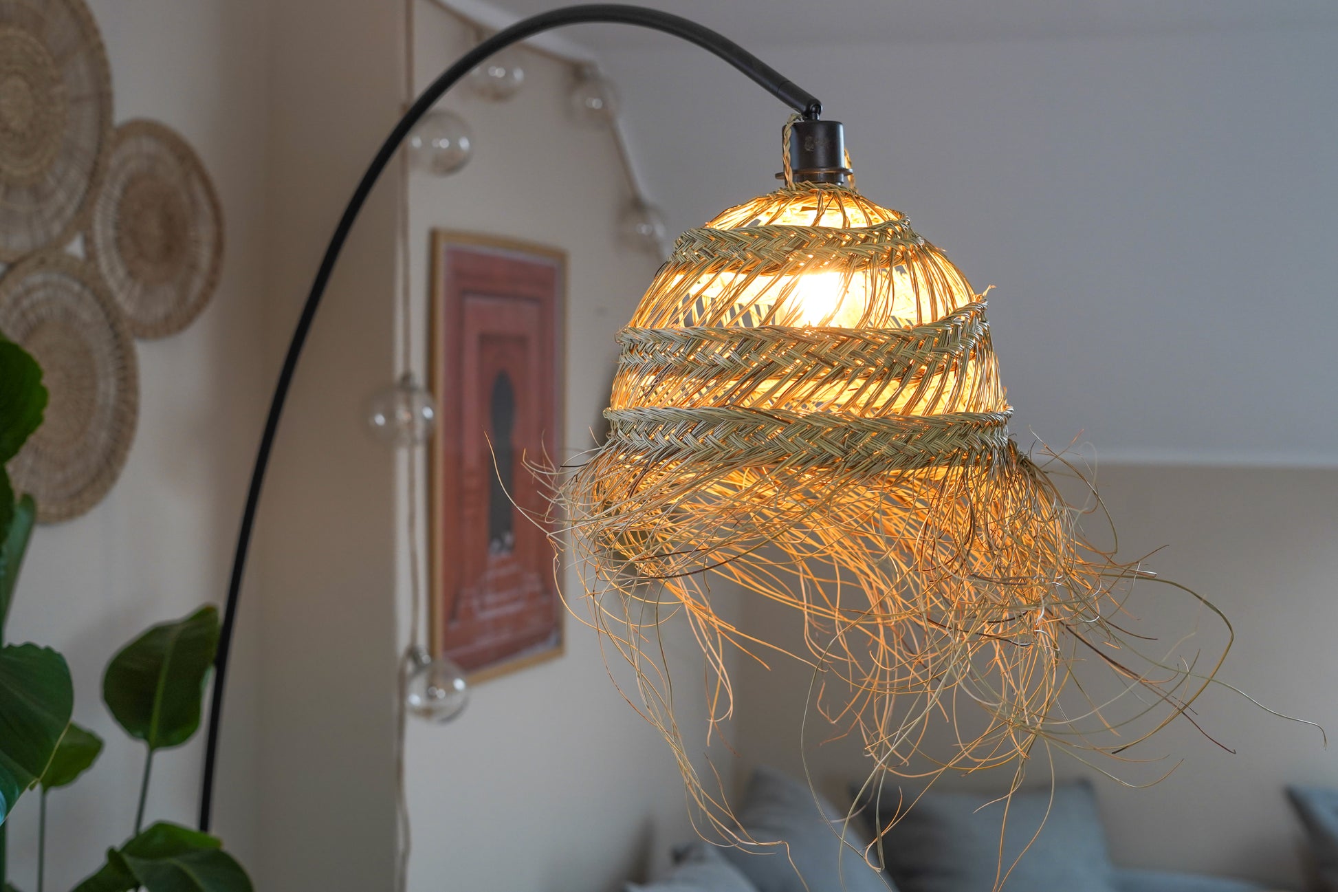 Handgefertigt in Marokko: Jeder Lampenschirm wird sorgfältig von erfahrenen Kunsthandwerkern aus natürlichem Halfagras geflochten. Die traditionelle Technik und die Liebe zum Detail machen jedes Stück zu einem Unikat.