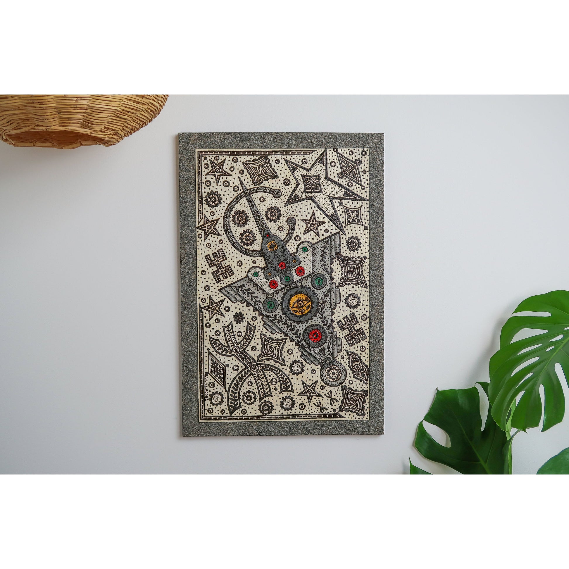 Jedes Kunstwerk wird zeitaufwendig mit Henna Farbe aus Agadir verziert, was es zu einem einzigartigen Kunstwerk macht. Das Gemälde ist 60cm x 40cm groß und wird deinem Raum einen besonderen marokkanischen Glanz verleihen. Du erhältst also nicht nur ein wunderschönes Wandbild welches es nur einmal gibt, sondern unterstützt mit deinem Kauf auch ganz direkt die Familie von Bachir in Marokko.