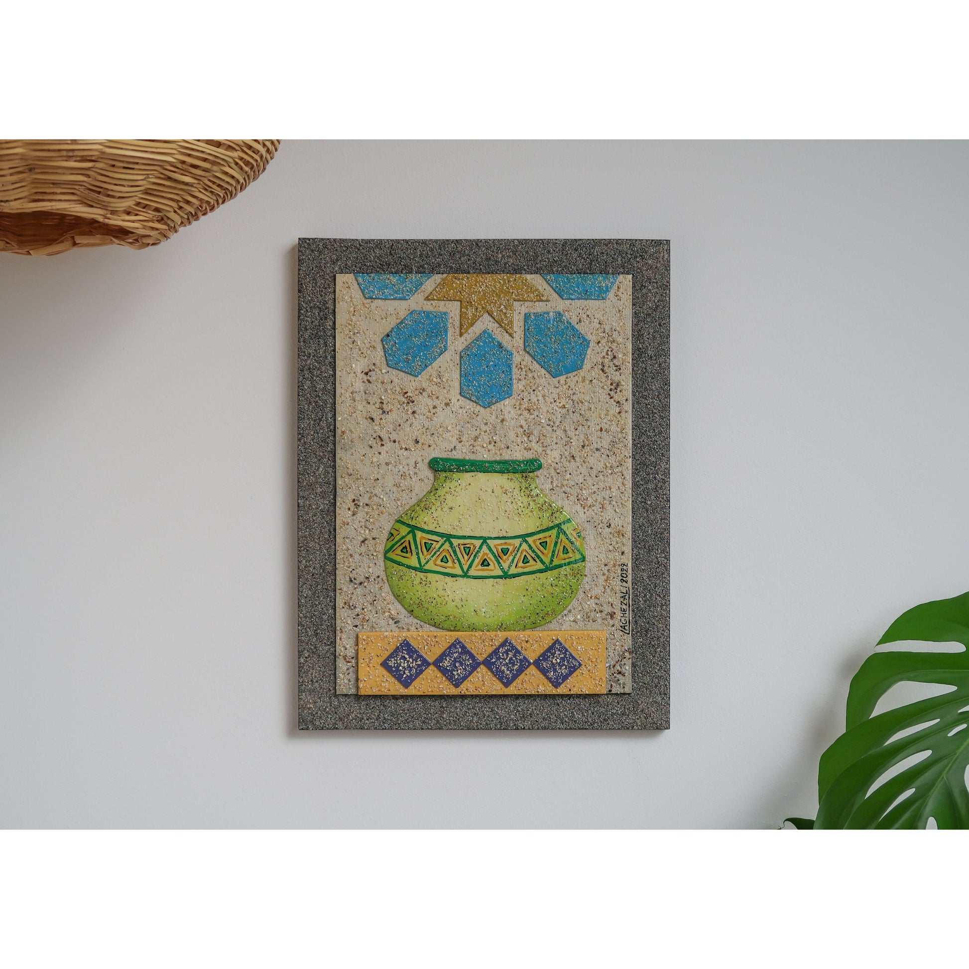 Jedes Kunstwerk wird zeitaufwendig mit einzigartigen Muschelstücken aus Agadir verziert, was es zu einem einzigartigen Kunstwerk macht. Das Gemälde ist 40cm x 30cm groß und wird deinem Raum einen besonderen marokkanischen Glanz verleihen. Du erhältst also nicht nur ein wunderschönes Wandbild welches es nur einmal gibt, sondern unterstützt mit deinem Kauf auch ganz direkt die Familie von Bachir in Marokko.