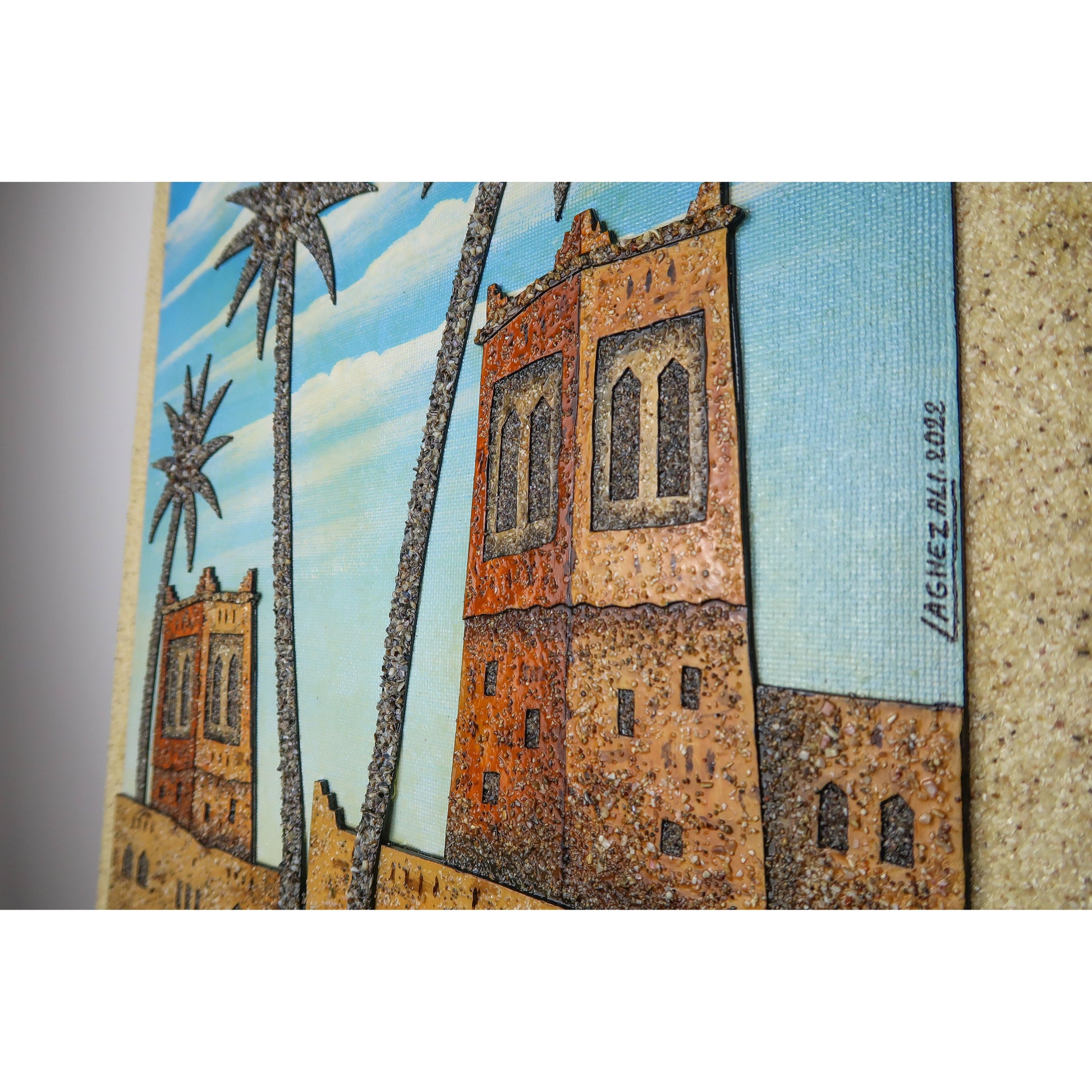 Jedes Kunstwerk wird zeitaufwendig mit einzigartigen Muschelstücken aus Agadir verziert, was es zu einem einzigartigen Kunstwerk macht. Das Gemälde ist 70cm x 50cm groß und wird deinem Raum einen besonderen marokkanischen Glanz verleihen. Du erhältst also nicht nur ein wunderschönes Wandbild welches es nur einmal gibt, sondern unterstützt mit deinem Kauf auch ganz direkt die Familie von Bachir in Marokko.